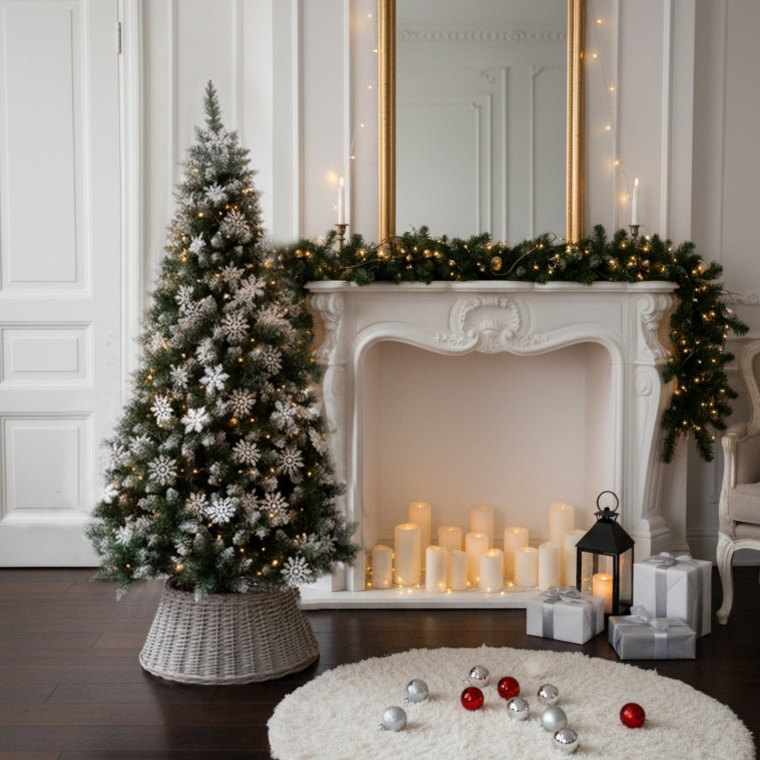 - ELEGANT 6FT SNOWY CHRISTMAS TREE: Add timeless charm to your festive décor with this 6ft (1.8m) artificial Christmas tree by Olsen & Smith. Its full, realistic design and pre-lit structure make decorating effortless and stylish for homes, offices, and shops.