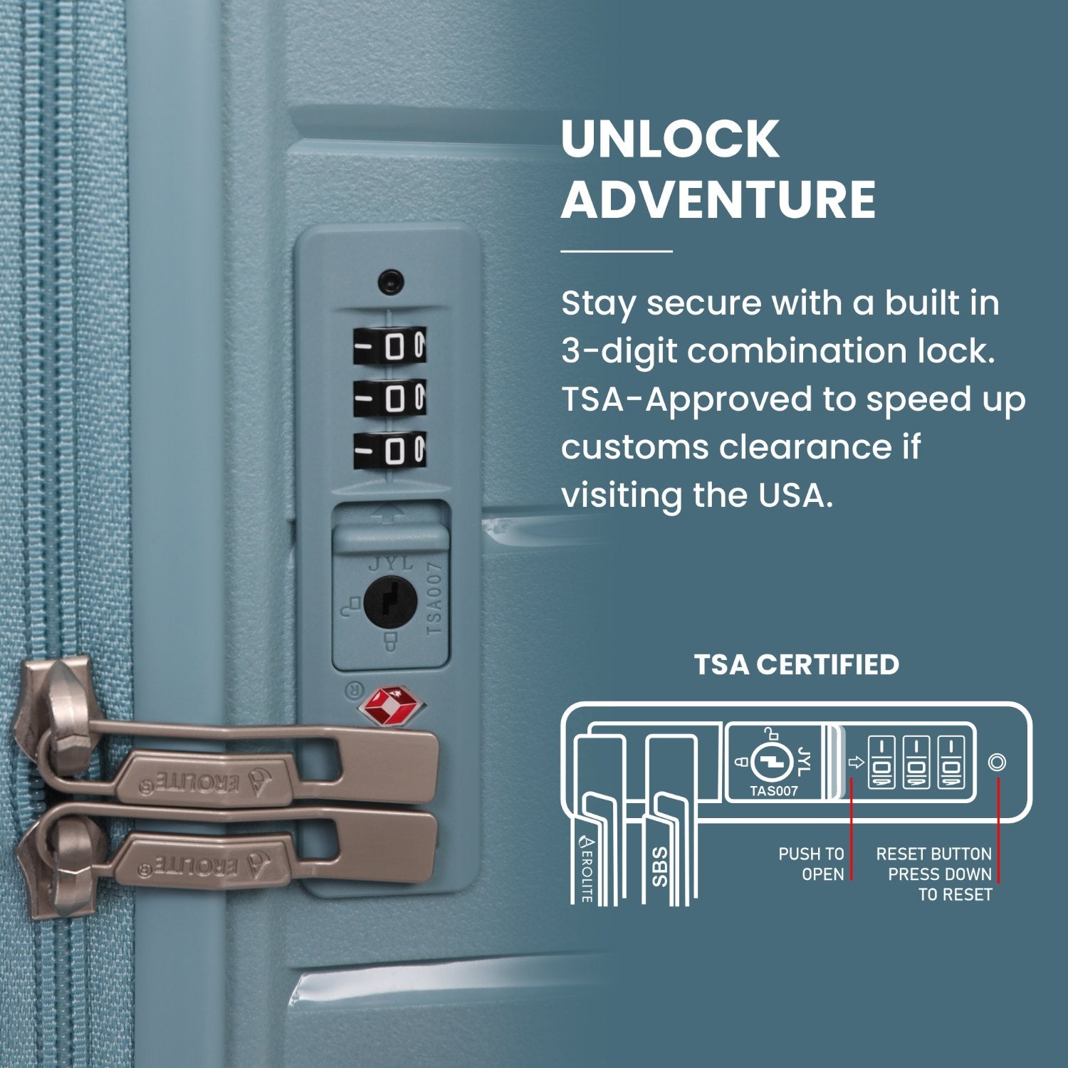 - Built-In TSA Locks: Keep your belongings safe and secure with integrated TSA-approved combination locks – ideal for international travel and added peace of mind.