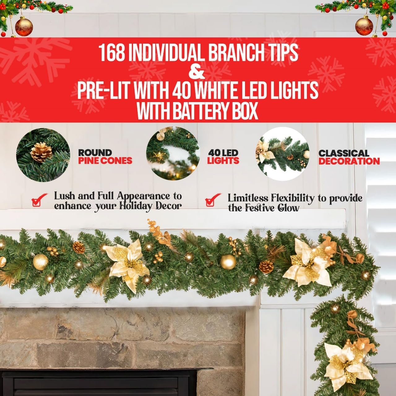 - High-Quality Material: Crafted from durable PVC, this pre-lit garland offers a realistic appearance and is built to last for many holiday seasons. The robust PVC material not only ensures longevity but also provides flexibility, making it easy to shape and arrange for the perfect Christmas decoration setup.