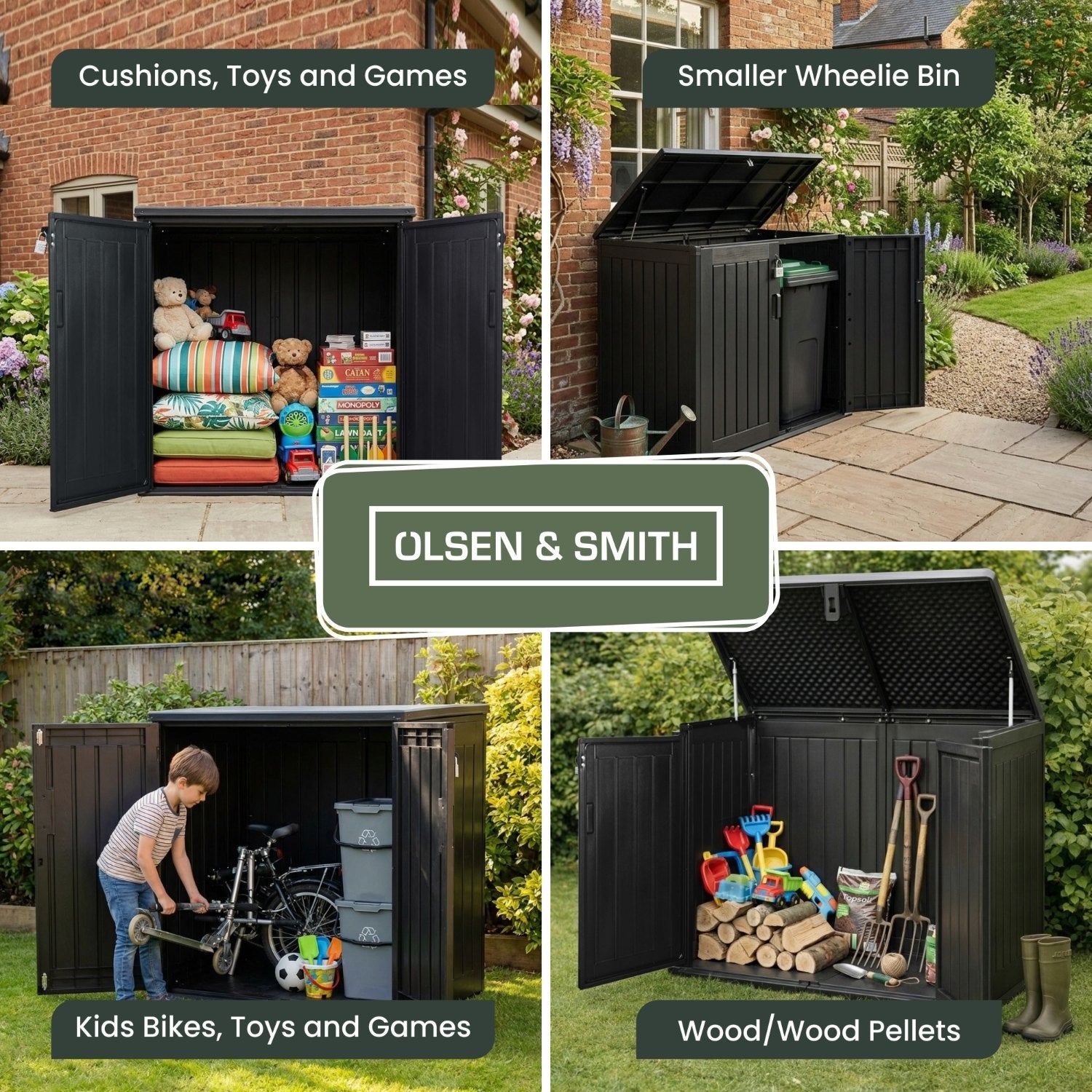 Olsen & Smith 775L Large Outdoor Garden Storage Box – Waterproof Wood-Effect Plastic Shed